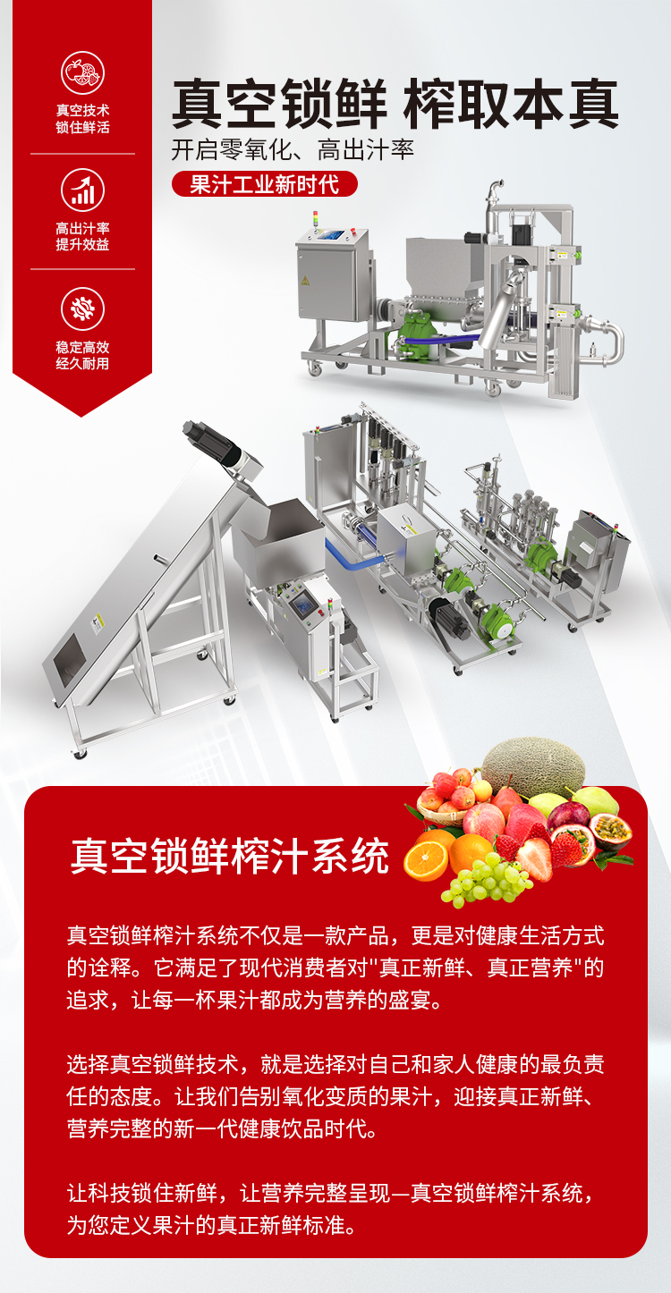 真空锁鲜榨汁系统不仅是一款产品,更是对健康生活方式的诠释。它满足了现代消费者对"真正新鲜、真正营养"的追求,让每一杯果汁都成为营养的盛宴。 选择真空锁鲜技术,就是选择对自己和家人健康的最负责任的态度。让我们告别氧化变质的果汁,迎接真正新鲜、营养完整的新一代健康饮品时代。 让科技锁住新鲜,让营养完整呈现—真空锁鲜榨汁系统,为您定义果汁的真正新鲜标准。